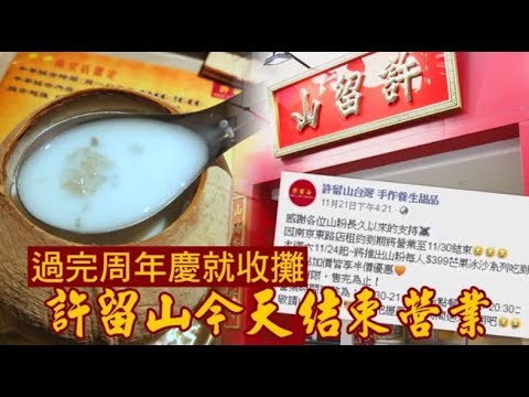 訂閱《蘋果日報》,隨時follow最新最快的新聞➔http://bit.ly/2J25cls 今日最夯動新聞看這邊➔http://bit.ly/2IExRJP 經典熱門動新聞,不看你就落伍啦➔http://bit.ly/2KNzZjo 最雋永暖心的感動時刻,盡在《微視蘋》➔http://bit.ly/2KfNGH7 紅色的招牌、金色醒目的「許留山」字樣,高掛在南京東路三段、靠近華航總公司的路邊,這是香港知名養生甜品店許留山,重回台灣市場所開出的1號店,但據了解,店面開出約1年,已確定於今日結束營業。未來許留山僅餘新店家樂福店,會否開出新店,該品牌表示尚無計劃。而許留山曾在2005年在台打響名號,後因擴張太快而收攤,相隔10餘年重返台灣市場,卻僅經營1年就陸續收店,也引發網友嘆惋:「怎麼又要倒了呢?」 ● 蘋果日報:https://ift.tt/2ARjMYx ● 蘋果動新聞:https://ift.tt/2Bon1Yw ● 蘋果FB:https://ift.tt/1eCHA0n ● 加入蘋果LINE:https://goo.gl/Mi2vqW